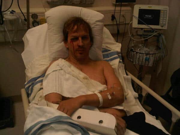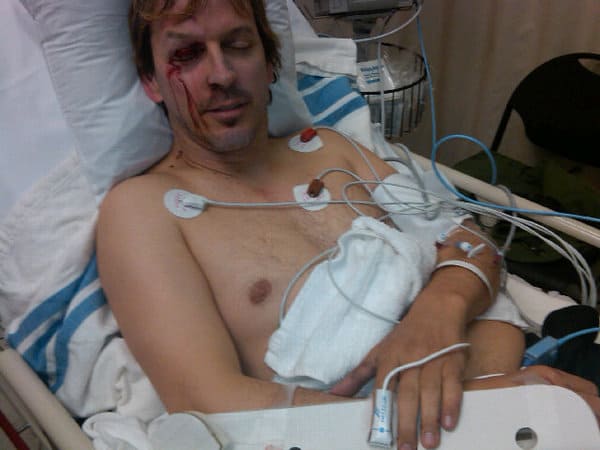 Despite his rough shape, he still managed to post some pictures on twitter and sent out a quick message to everyone saying “ATV accident, massive arm injury and lacerations to eye in Oregon. Life is good.”